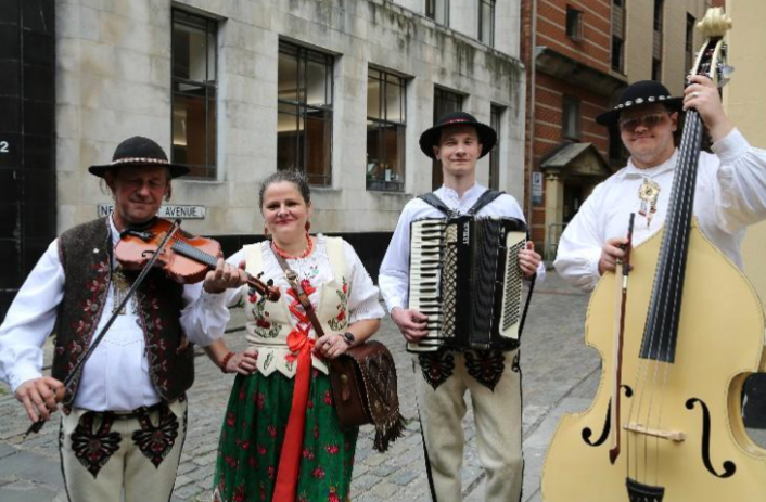 The White Lion Inn stood on the corner of Broad Street and New market Avenue in Bristol. During his stay in Bristol, Kościuszko also spent time in the American Consulate in Bristol, before sailing to America.Distinguished guests were joined by members of the APS and other guests, both Polish and British. The Emigranty Highlander Family Band created a lively atmosphere of highlander songs, including “Hej tamspod Tater”.